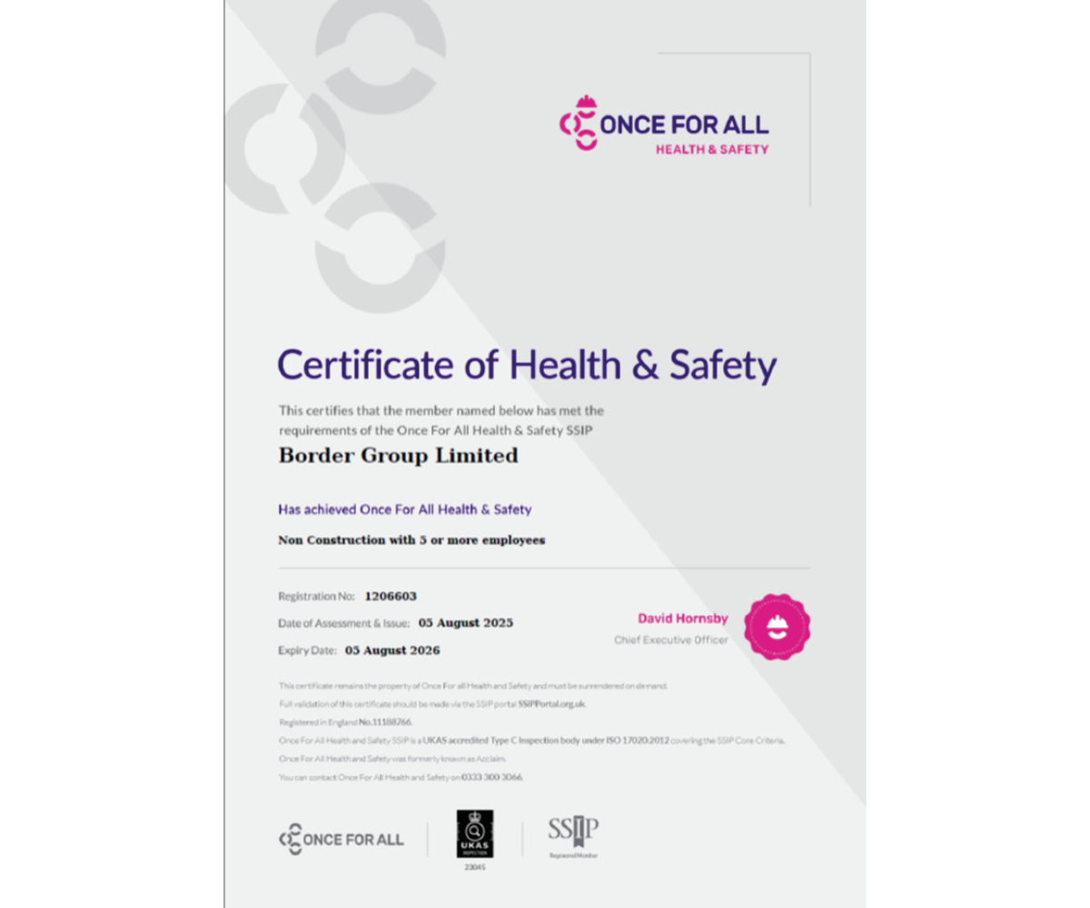 Click to view our SSIP Acclaim H&S Accreditation certificate.